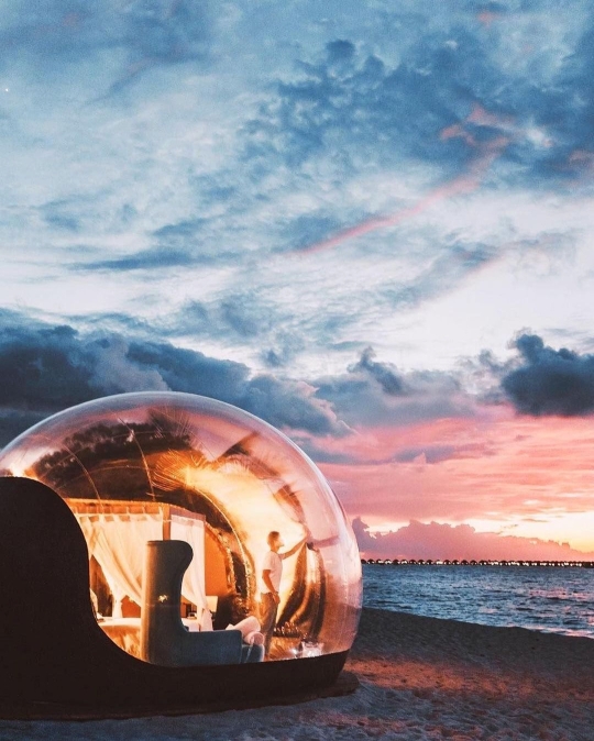 사진에서 보시는 것처럼 해변가에 위치한 버블 모양의 텐트입니다.